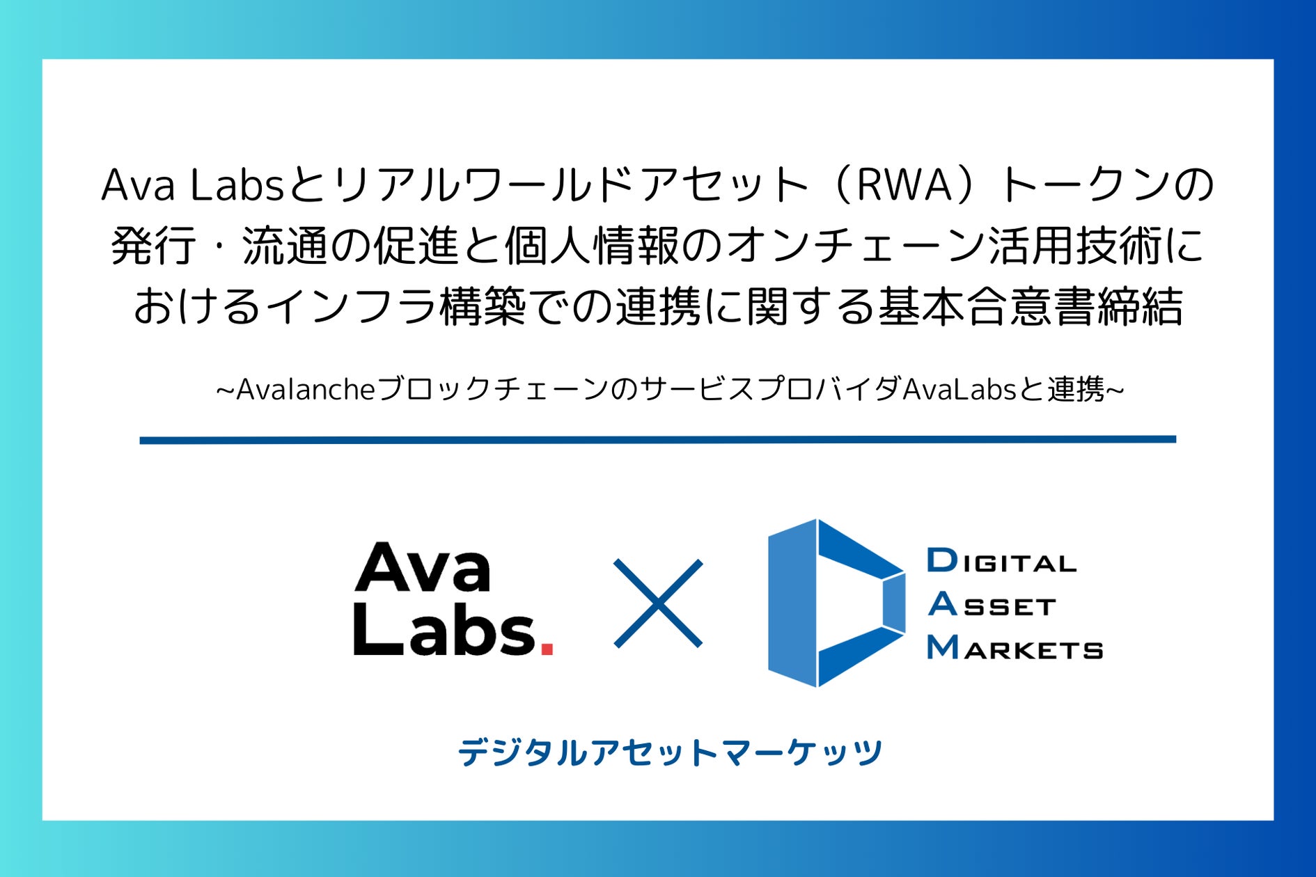 デジタルアセットマーケッツ、Ava Labsとリアルワールドアセット(RWA)トークンの発行・流通の促進と個人情報のオンチェーン活用技術におけるインフラ構築での連携に関する基本合意書締結(JP/EN)