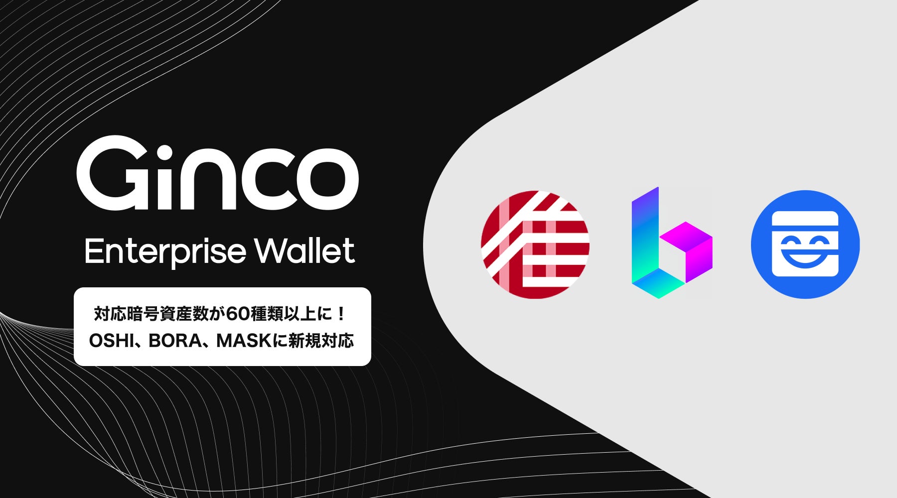対応暗号資産数が60種類以上に!業務用暗号資産ウォレット「Ginco Enterprise Wallet」がOSHI、BORA、MASKの3通貨に新規対応