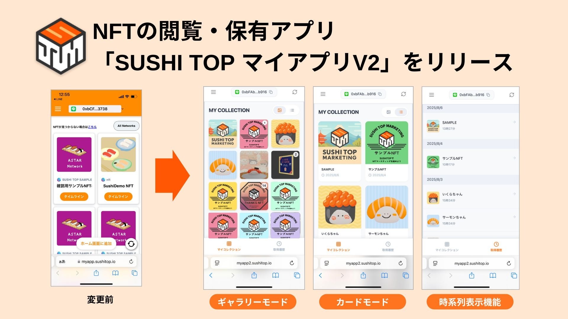 NFTの閲覧・保有アプリ「SUSHI TOP マイアプリV2」をリリース、「快適さ」と「愛着」を両立するUI/UXへ