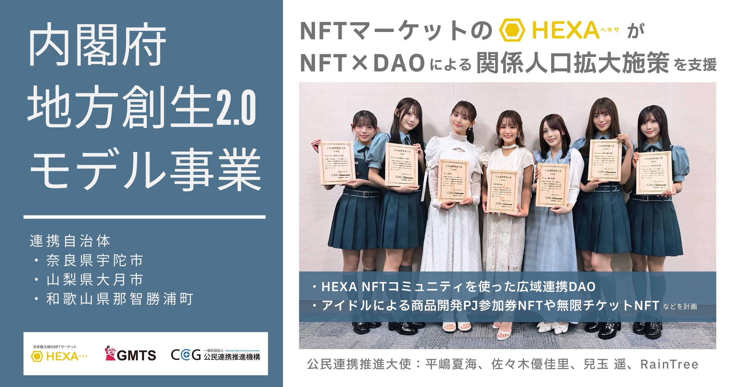 【内閣府地方創生2.0モデル事業】アイドルによる商品開発プロジェクトNFT、無限素麺・生まぐろチケットNFT販売や、複数自治体の広域連携DAO立ち上げなどをHEXA(ヘキサ)で実施することを発表!