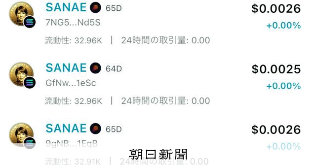 高市早苗首相の名前を冠した「SANAE TOKEN(サナエトークン)」と同じような暗号資産(仮想通貨)が数多く生まれている。有名人やネット上の話題をもとに作られる「ミームコイン」で、無登録の交換業者…