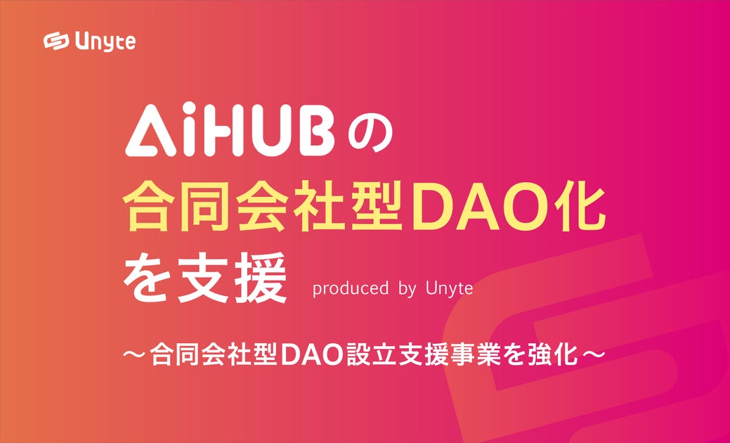 株式会社Unyteが、4月22日解禁となる合同会社型DAOによる国内初のAI研究開発支援DAO「AiHUB Community合同会社」の設立・運営を支援