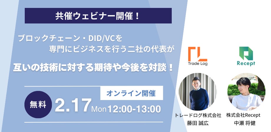 【共催ウェビナー開催!】ブロックチェーンとDID/VCの今後のユースケースについて<トレードログ×Recept>